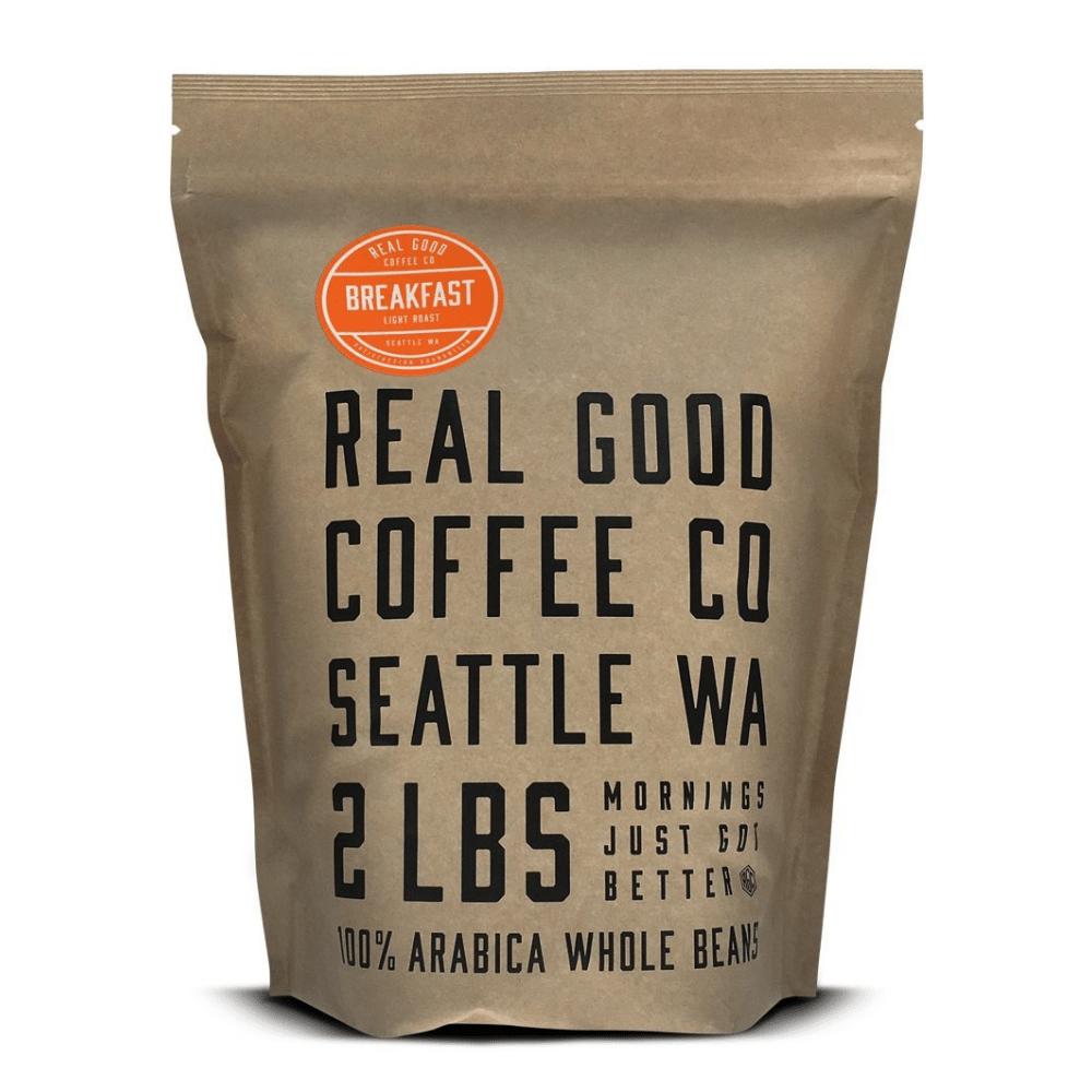 Real Good Coffee Company's Breakfast Blend light roast whole bean coffee is the perfect morning coffee to ease you into your day. Their coffee is made with premium quality Arabica best coffee beans from Central and South America. They are grown, sourced, and packaged responsibly, after being roasted fresh in Seattle, USA.