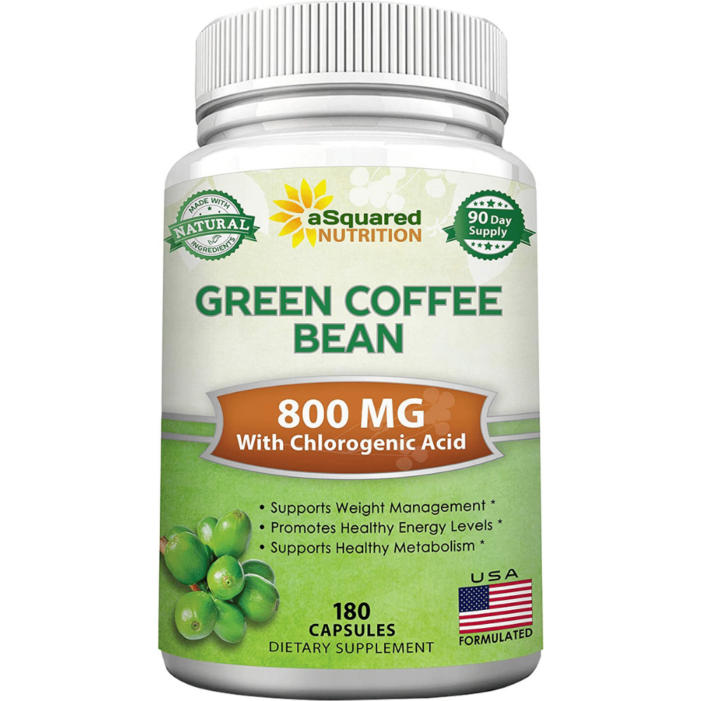 Natural Green Coffee Bean Formula by aSquared Nutrition. Chlorogenic acid, a powerful antioxidant in green coffee, is included in this effective formulation. The recommended daily intake of green coffee bean powder is 1600 milligrams, and each of our capsules contains 800 milligrams of this ingredient.