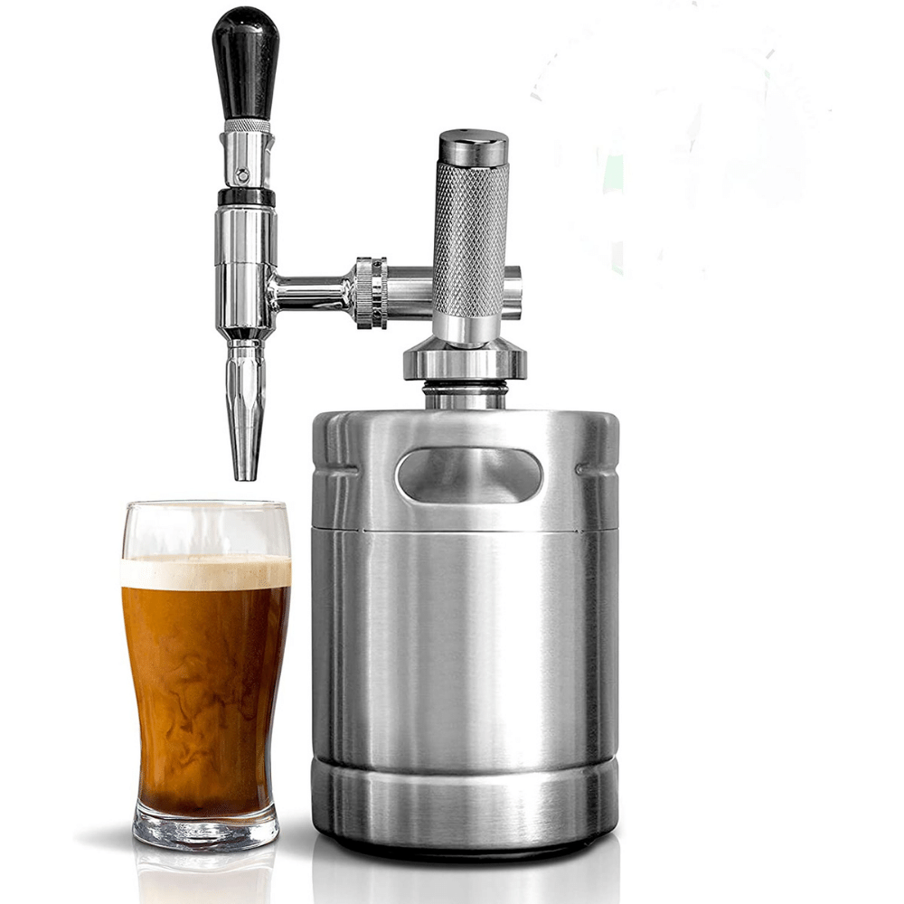 NutriChef has a Nitro Cold Brew Coffee Maker that allows you to make cold brew coffee at home and add a nitro charger capsule to super charge it. The keg has a 64 oz. standard liquid volume capacity (also available in 128 oz), is made of food grade S/S 304 stainless steel, and comes with an upgraded faucet.